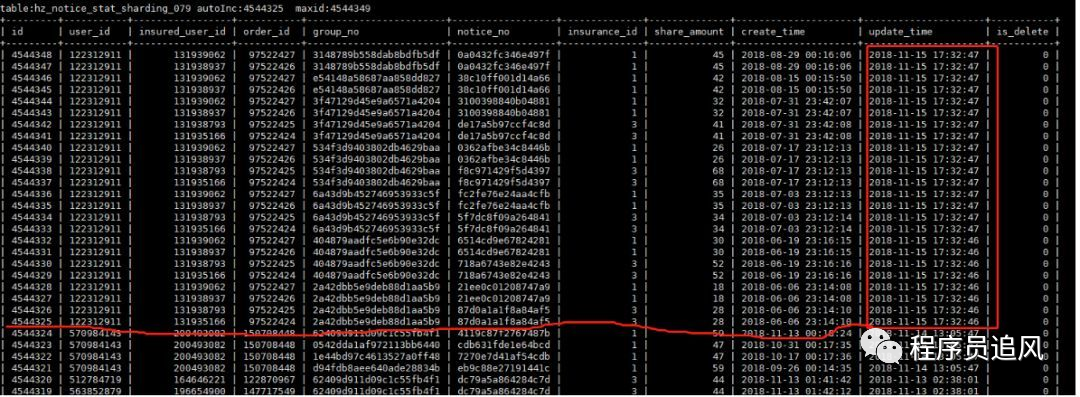 由于用户的表设置了ON UPDATE CURRENT_TIMESTAMP列,因此可以把所有的出错的表的max id、autoincrement及最近更新的几条记录抓取出来,看看是否有什么规律。抓取的信息如下: