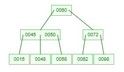 并且,每个内部结点的关键字都作为其子树的分隔值。比如,某结点含有2个关键字(假设为a1和a2),也就是说该结点含有3个子树。那么,最左子树的关键字均小于a1;中间子树的关键字介于a1~a2;最右子树的关键字均大于a2。