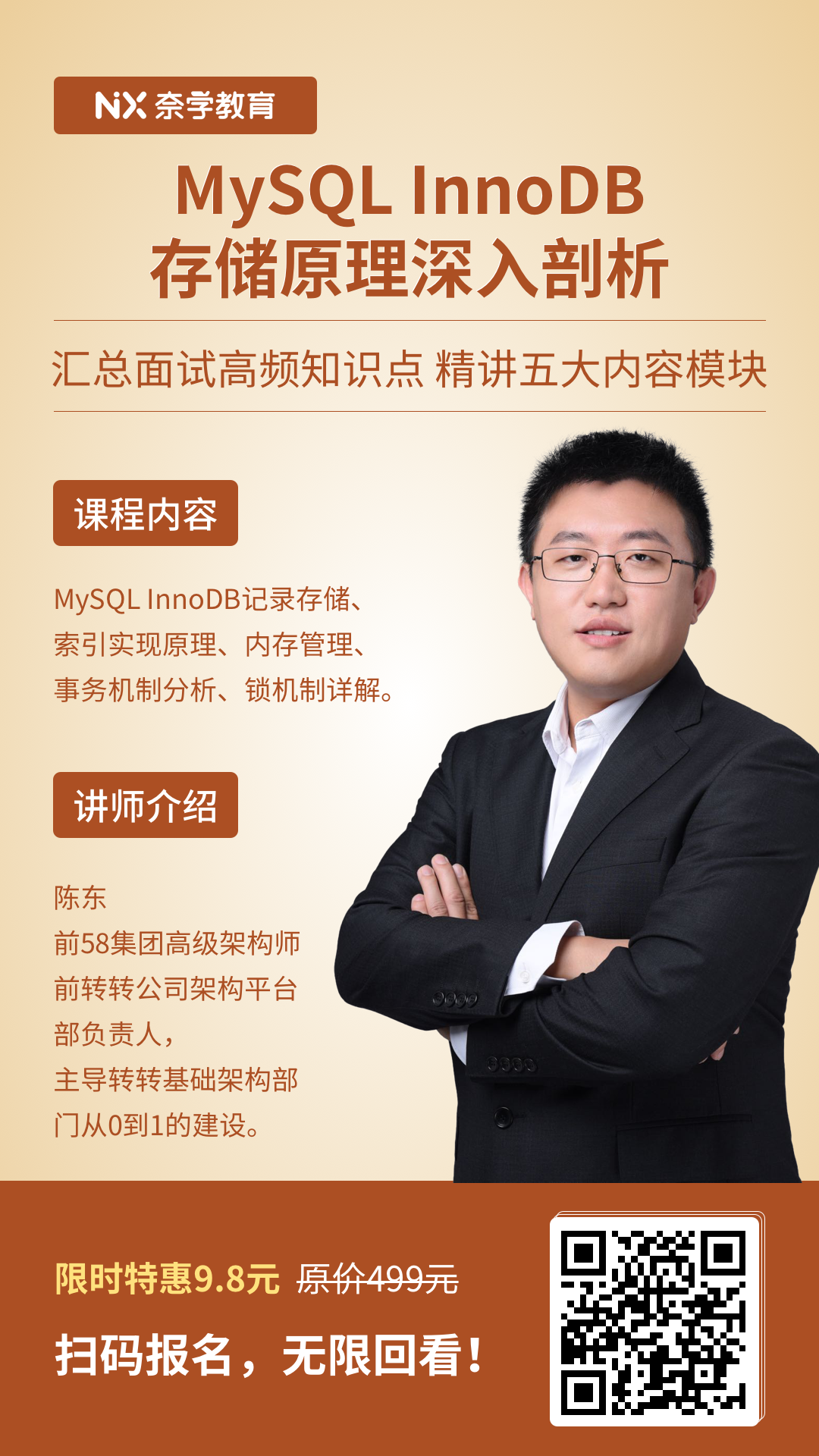 今天跟大家聊一个最近马上开班的《MySQL InnoDB 存储原理深入剖析》精品直播课,直接解决你MySQL底子差、只会用,不懂原理的问题,如果学完后你面试还卡InnoDB,来找我算账就好……