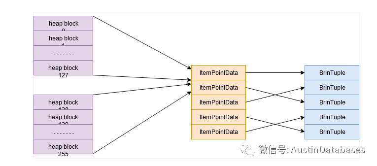基于这个问题,这就导出另一个问题,我们的BRIN 索引的 桶 姑且称为桶中存放的数据,是多还是少的问题。举例 我们建立一个BRIN 索引。
