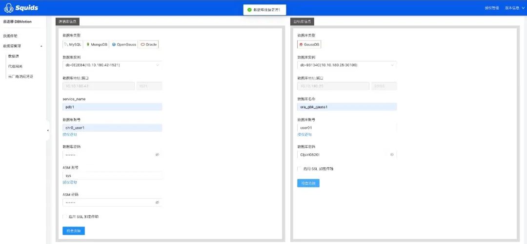 沃趣科技Squids DBMotion支持Oracle迁移到GaussDB