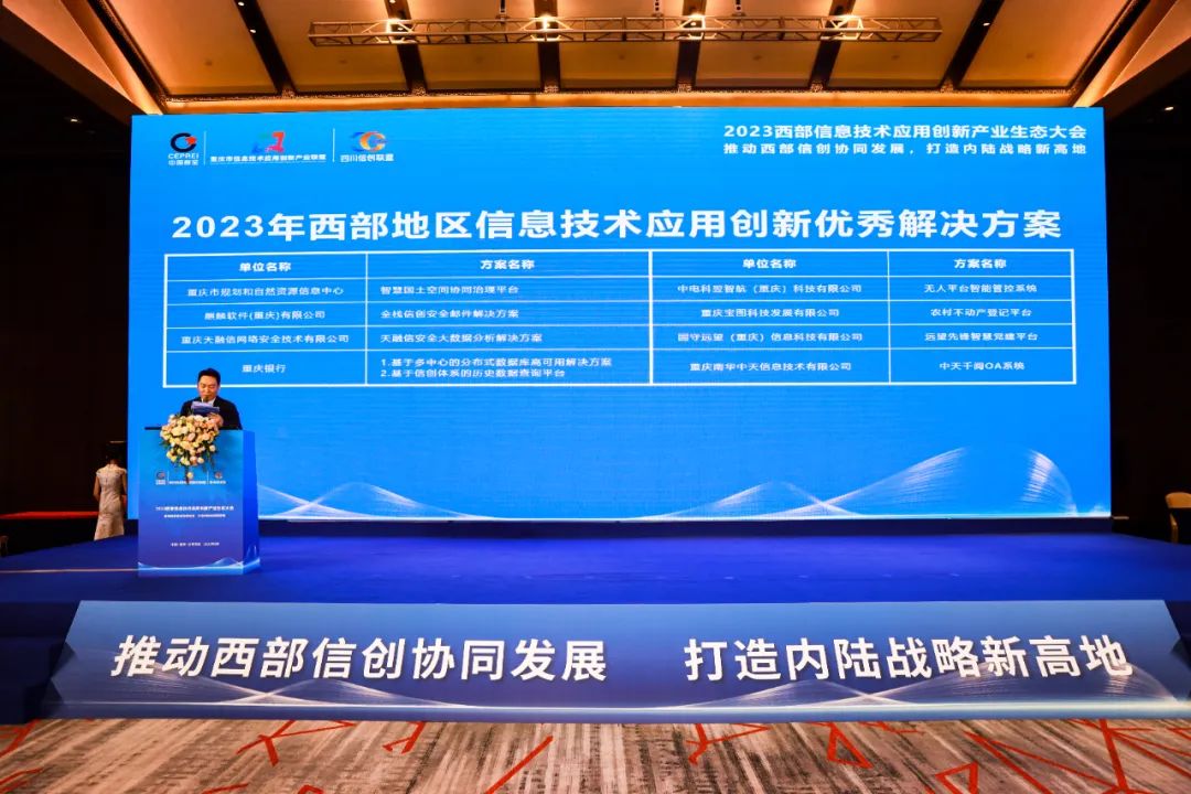 6月7日,“2023年西部信息技术应用创新产业生态大会”在重庆成功举办。大会由中共重庆市委网络安全和信息化委员会办公室、重庆市经济和信息化委员会、重庆市大数据应用发展管理局、四川省经济和信息化厅指导,工业和信息化部电子第五研究所主办,重庆市信息技术应用创新产业联盟、四川省信息技术应用创新产业联盟、重庆市沙坪坝区经济和信息化委员会等承办。