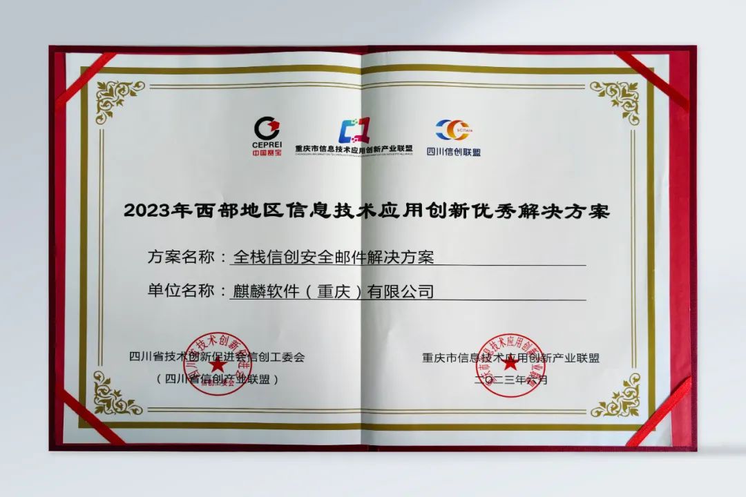 大会以“推动西部信创协同发展、打造内陆战略新高地”为主题,聚焦网信政策、行业应用、技术公关等进行前瞻性的交流和研讨。会上,麒麟软件“麒麟全栈信创安全邮件解决方案”荣获“2023年西部地区信息技术应用创新优秀解决方案”,并入选西部信创优秀解决方案汇编,面向各行业领域进行宣传推广。