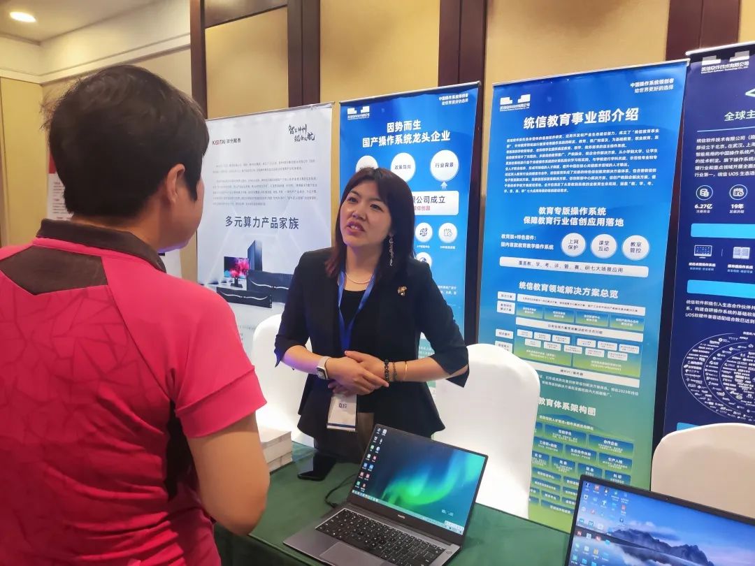 在大会现场,统信软件携统信UOS教育版及教育数字化全景解决方案精彩亮相,统信软件教育事业部销售总监杜丽惠与莅临展位参观的嘉宾和领导进行了深入交流,并表示将持续助推教育数字化转型与发展,赋能人才培养及高校产学研深度融合发展,积极推动教育国产化落地及信创人才培养,为中国教育的现代化发展贡献数字化力量。