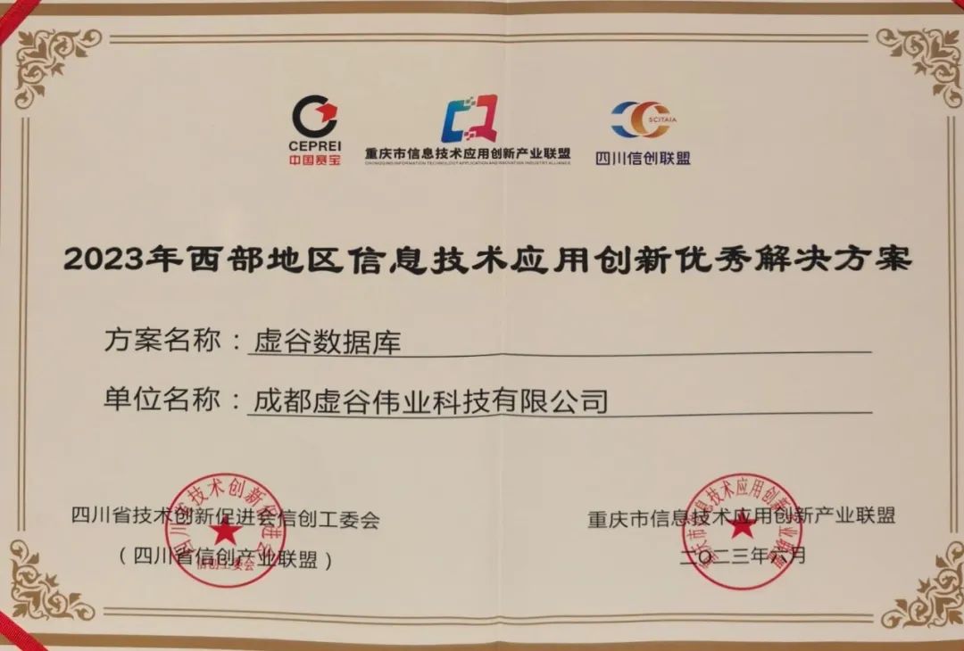 会上,西部地区信创优秀解决方案汇编正式发布,虚谷伟业作为唯一基础软件厂商「虚谷数据库」入选,获评2023年西部地区信息技术应用创新优秀解决方案。