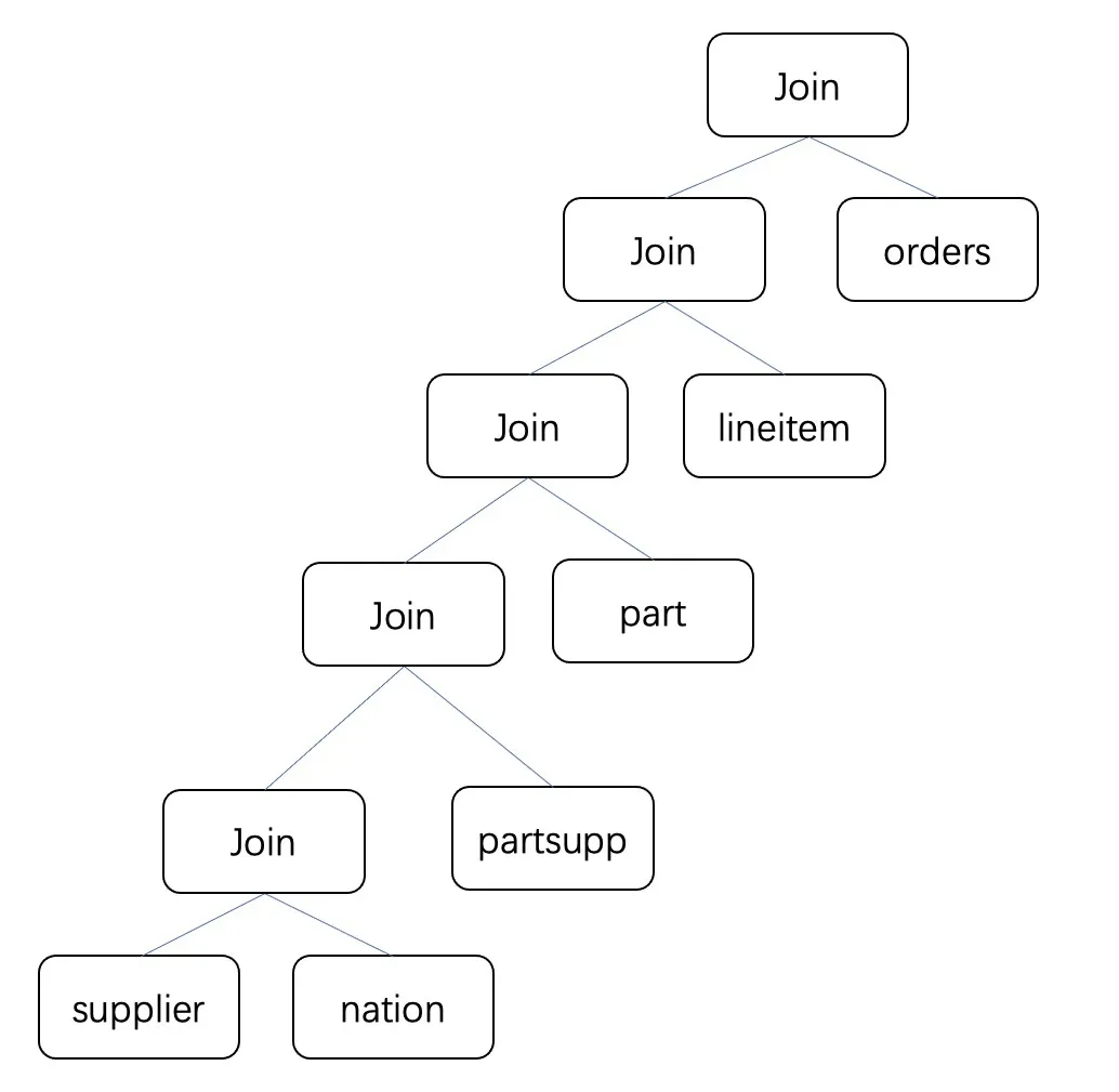 6. 最终N张表按照上述选择顺序构造出左深树