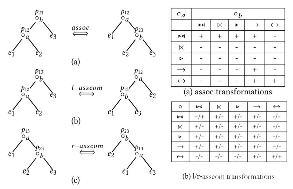 Left Deep Tree: bottom comm规则 : A⨝B → B⨝A, 只应用于左深树的最底下两表 l-asscom规则: (A⨝B)⨝C → (A⨝C)⨝B
