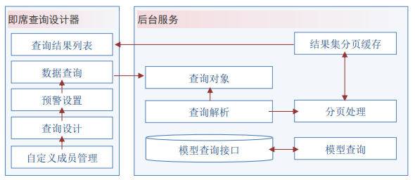 吉查是简单快速灵活的数据查询工具。用户通过简单拖拽,任意组合查询内容及查询条件,其构架如下 图所示: