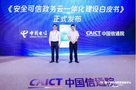 5月30日,2023数字政府高质量发展论坛在北京举办,大会聚焦业界关注的政策、技术、应用、标准、发展等议题,邀请政产学研各界共议政府数字化转型之路。现场重磅发布了由中国电信联合中国信息通信研究院云计算与大数据研究所共同撰写的《安全可信政务云一体化建设白皮书》(以下简称“白皮书”),中国信息通信研究院云计算与大数据研究所政企数字化转型部主任徐恩庆、中国电信天翼云科技有限公司政务行业中心总经理张星出席发布仪式。