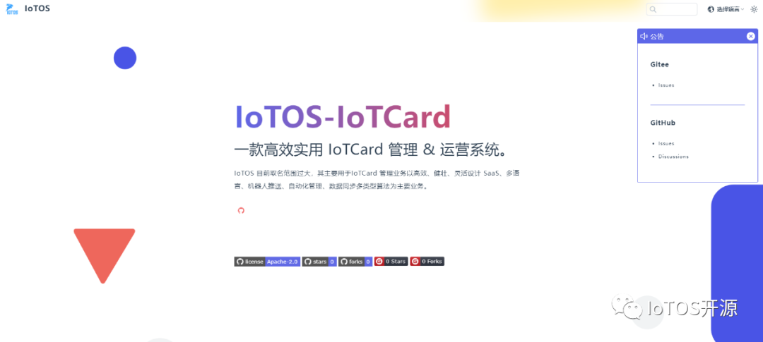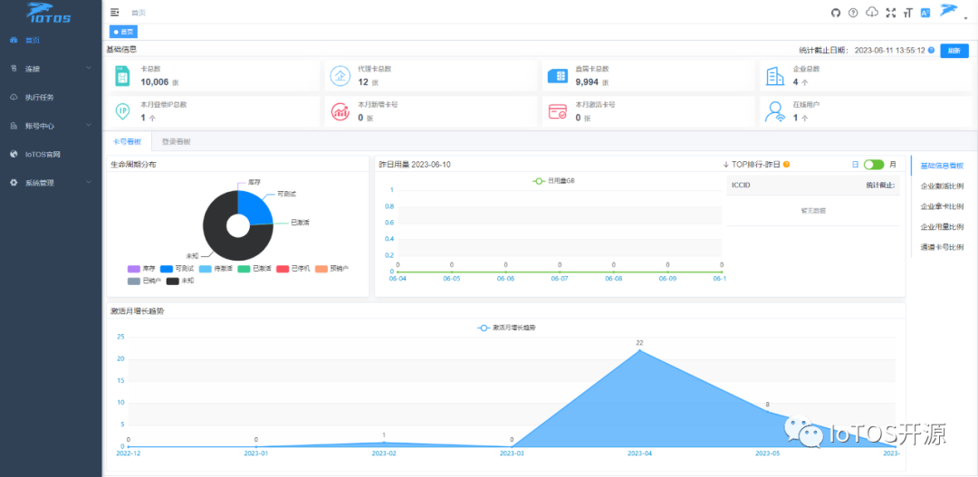 IoTOS 是基于 SpringBoot、Vue、Mybatis、RabbitMq、Mysql、Redis 的开源 IoTCard(物联卡管理) 系统,是企业私域管理与运营的综合解决方案。