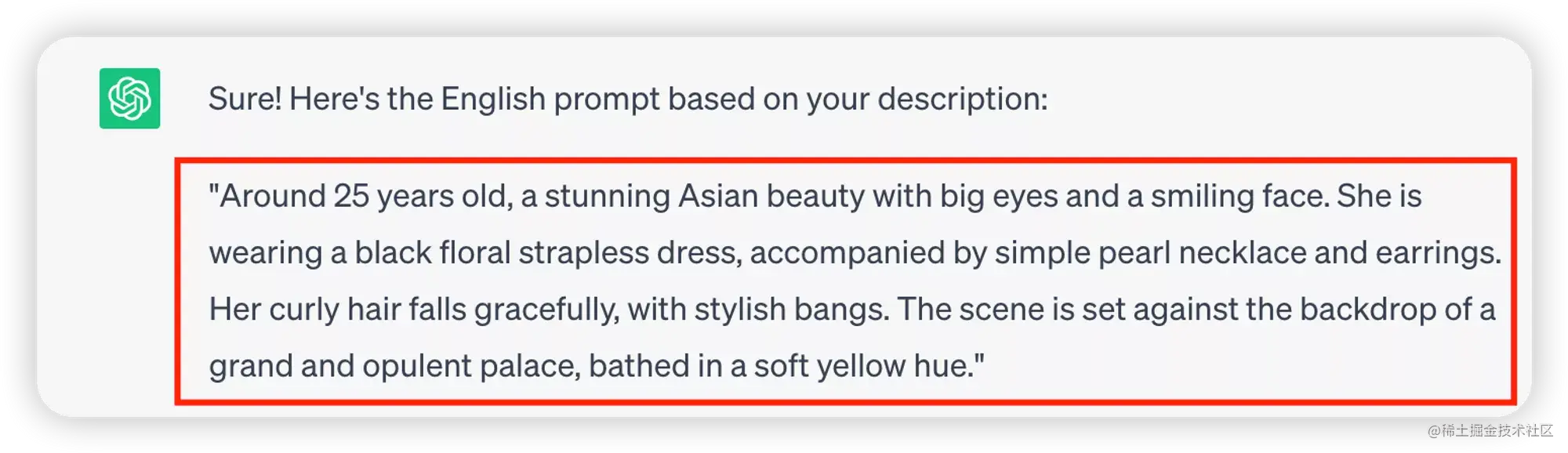 - 先在ChatGPT中,描述一下头像的说明,生成Midjourney的提示词
