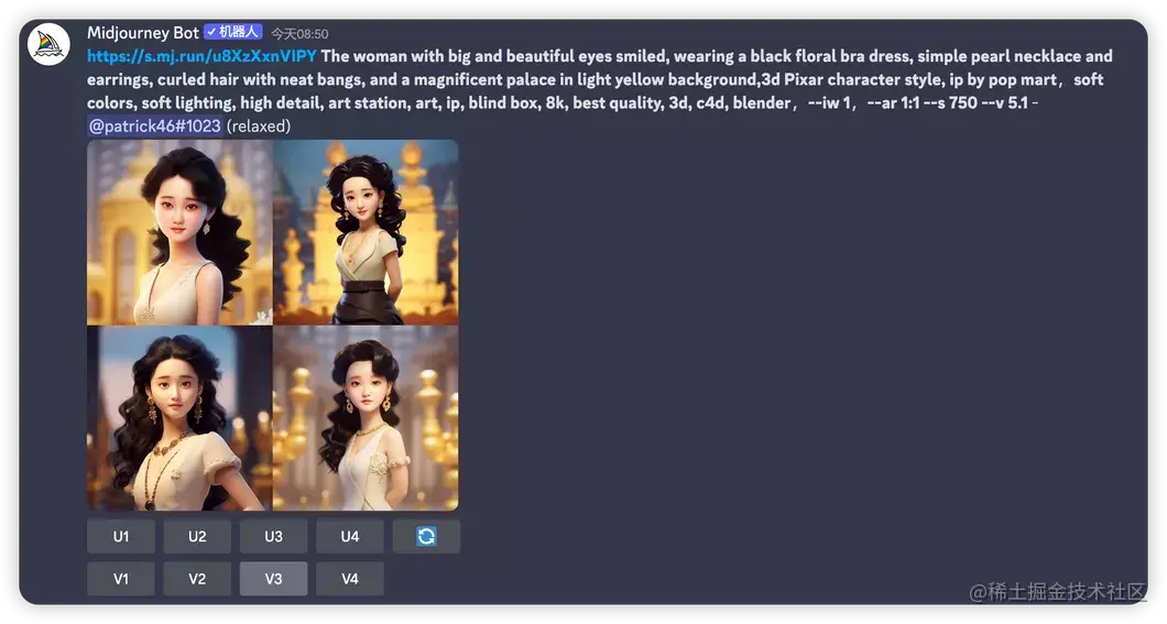这样,我们利用ChatGPT生成和优化MJ的提示词,然后在MJ里面进行照片生成,就完成了我们的泡泡玛特风格的卡通头像制作,我们看到,提示词里面还有很多参数调整,来实现自己心目中的形象。手动实践起来吧。
