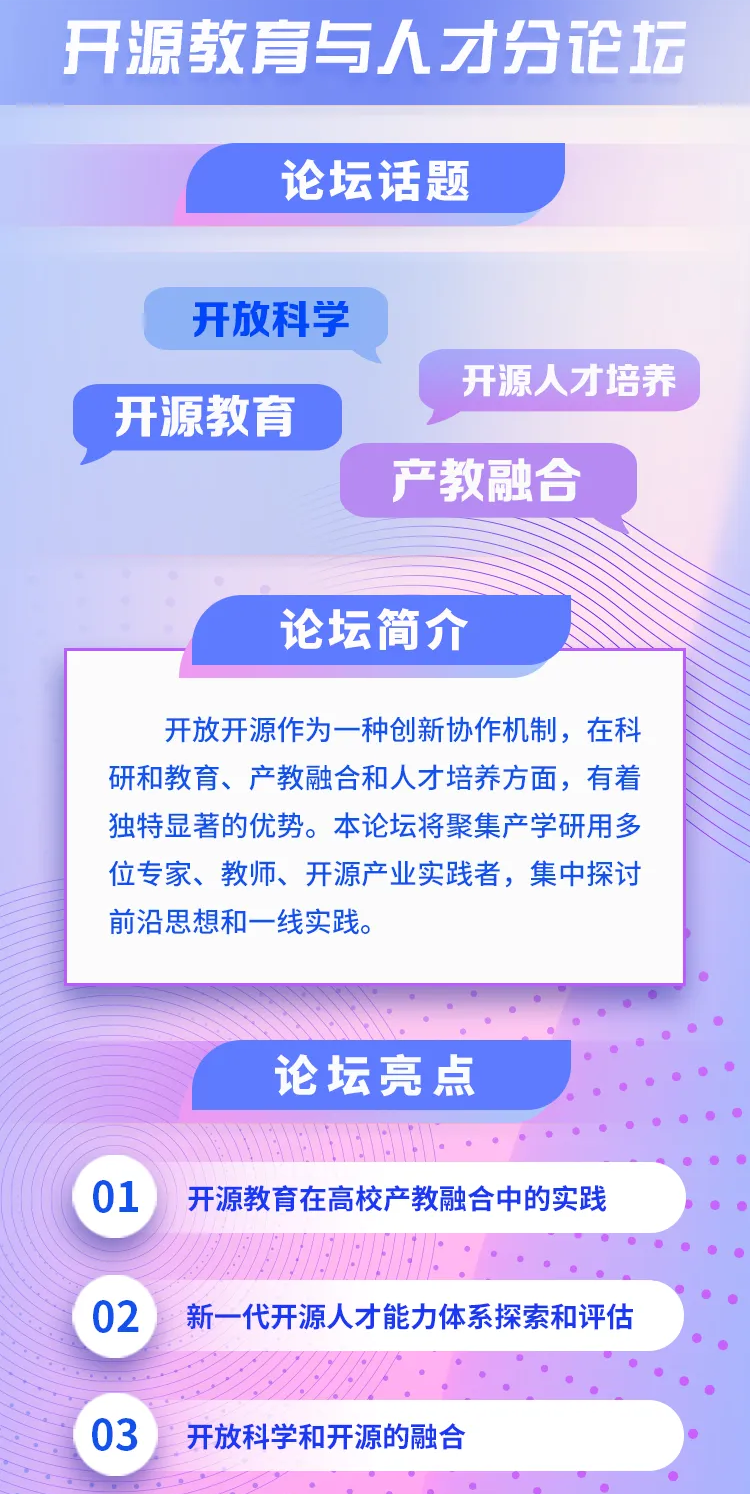 诚邀您与业界同仁一起探讨开源教育与人才培养的前沿思想和一线实践,共创开源繁荣生态未来!