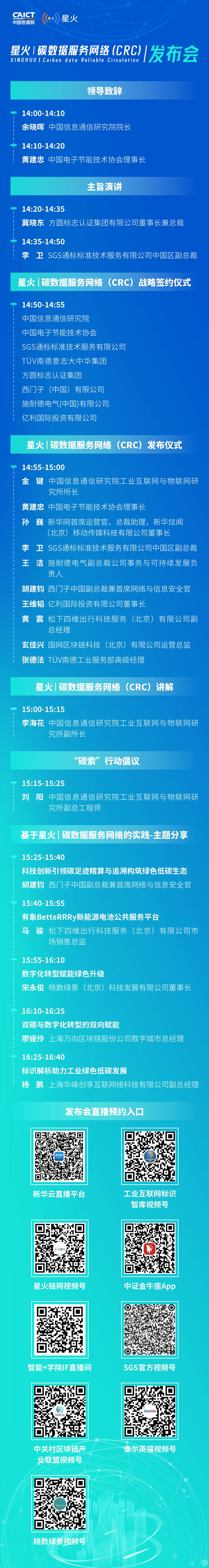 2023年6月13日下午14:00,星火 | 碳数据服务网络(Carbon data Reliable Circulation)发布会即将开启。