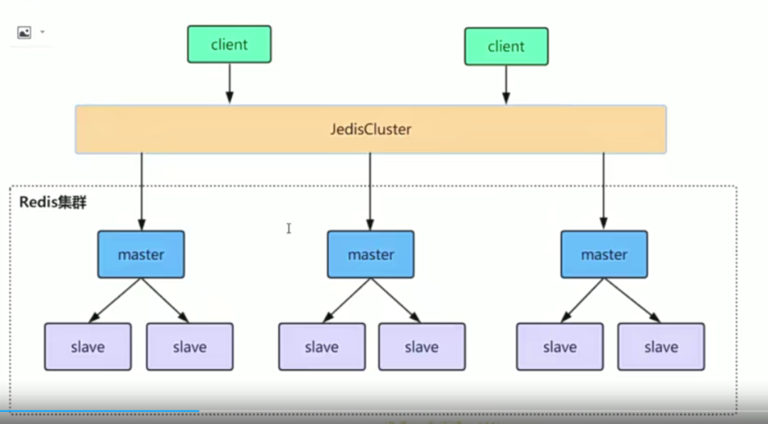 高可用集群架构,与前面的哨兵最大区别是,这边会分片放,前面哨兵如果master放10个g,那么这里的cluster则会分成三部分,分别为3个g,3个g,4个g。