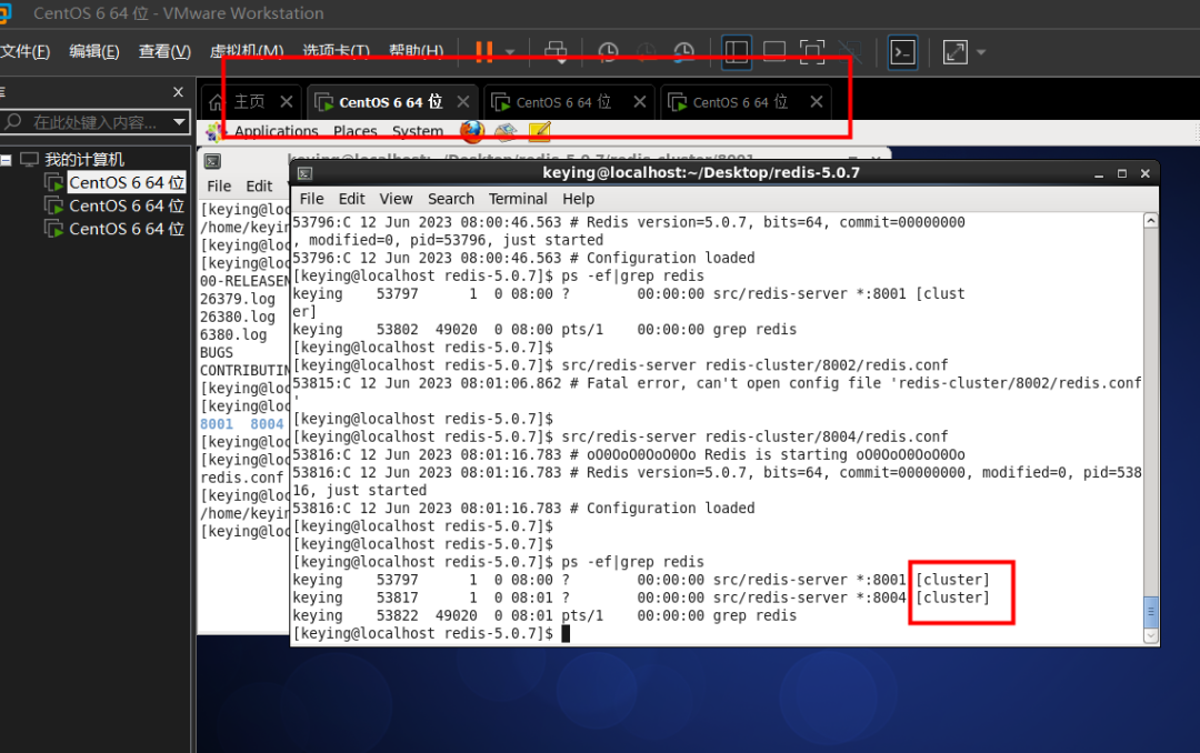 搭建好之后启动,发现8001和8004启动的服务进程和之前的不同,后面有cluster...