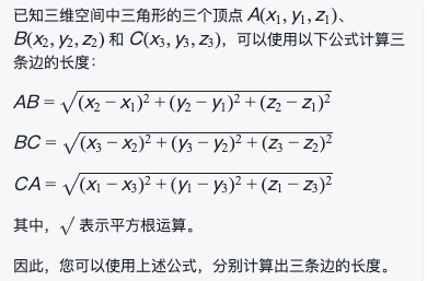 因此,您可以使用上述公式,分别计算出三条边的长度。
