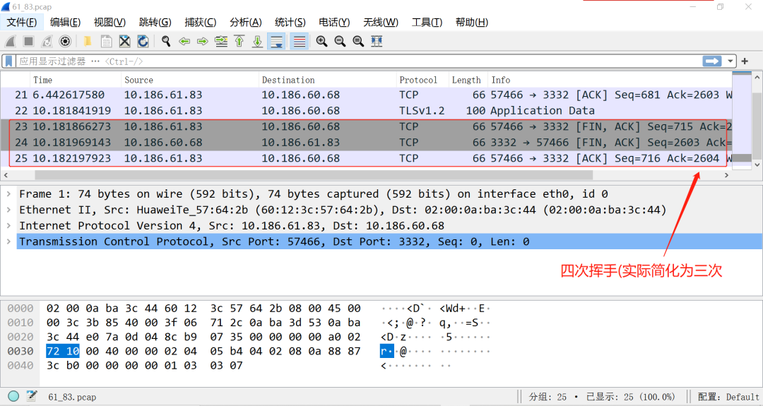 我们可以通过 tshark 抓包来观察 TCP 连接、断开的具体过程。
