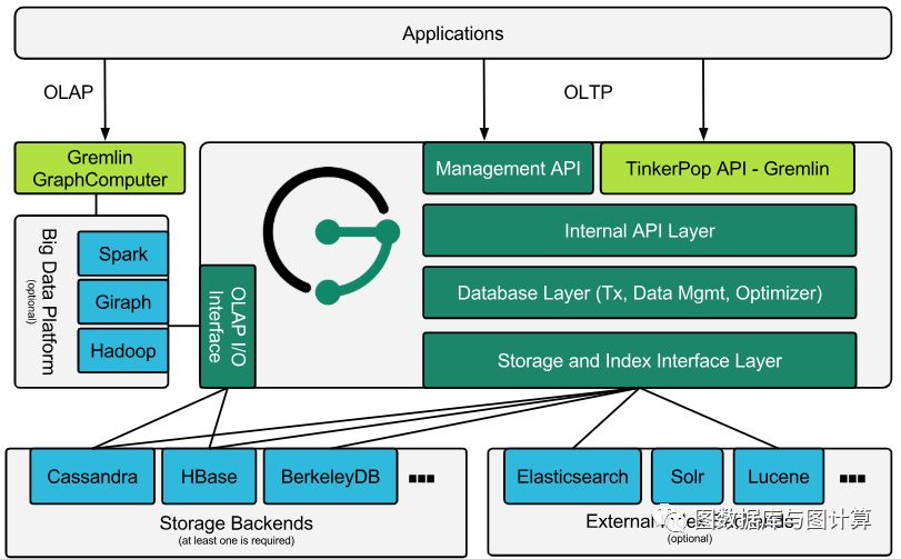 JanusGraph支持多个存储和索引适配器,目前它支持如下适配器,但JanusGraph模块化的架构使得它也容易支持其他第三方适配器。