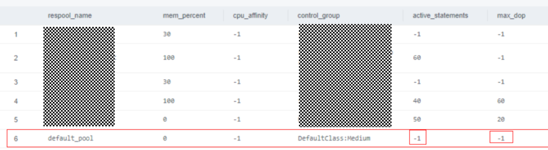 从图2可以看到default_pool资源池的active_statements和max_dop都为-1,都不进行管控,此时通过该资源池绑定的用户下发作业,TopSQL不记录作业信息。