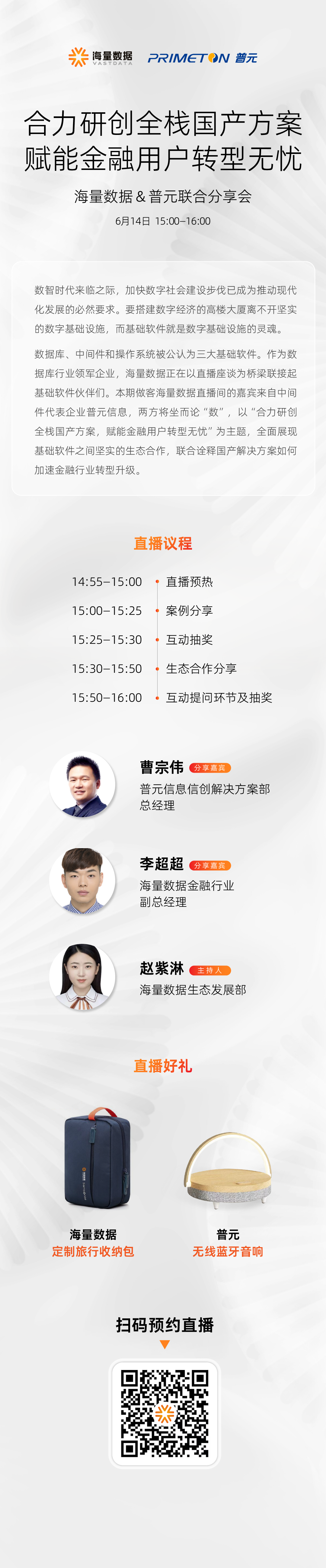 文章转载自海量数据,如果涉嫌侵权,请发送邮件至:contact@modb.pro进行举报,并提供相关证据,一经查实,墨天轮将立刻删除相关内容。