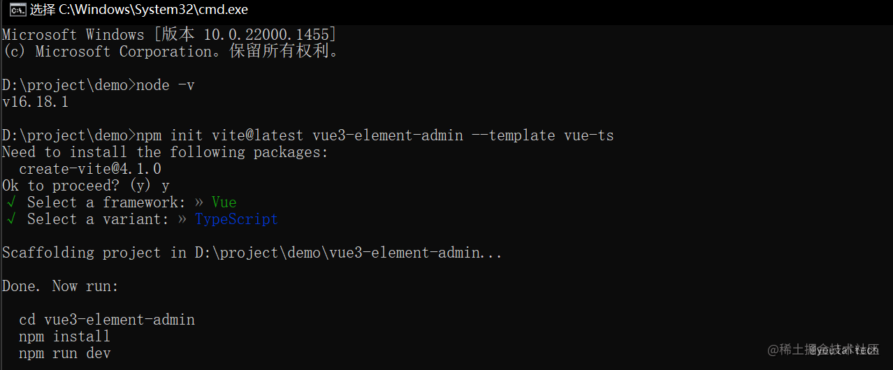npm init vite@latest vue3-element-admin --template vue-ts