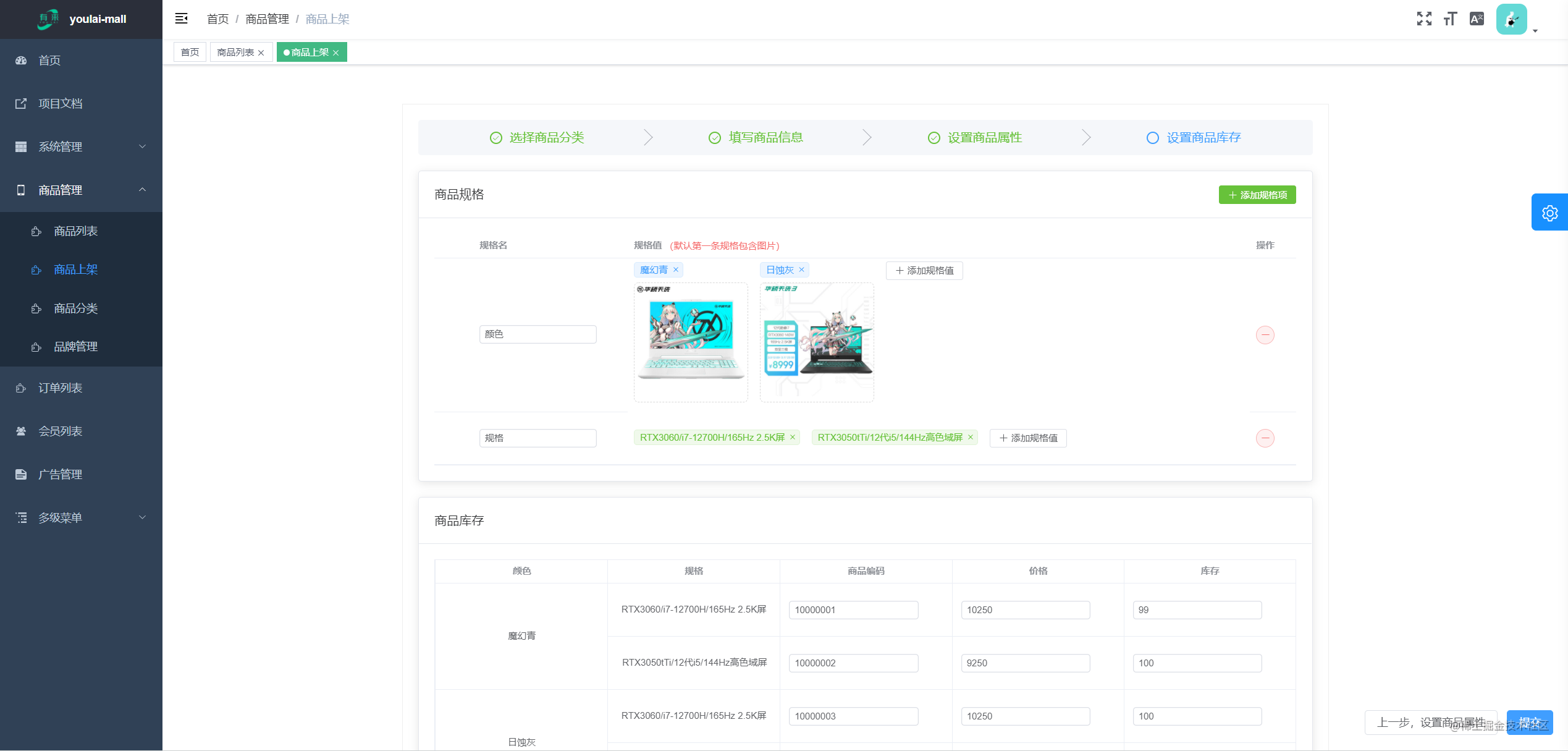 | youlai-mall 商品管理 | mall-app 移动端 |