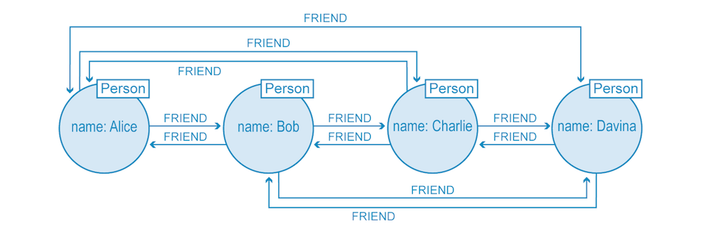 请看下图一个基本的社交网络,在这个网络中,查询是在本机处理的关系数据上进行的(谁和谁有关系?),而不需要进一步的索引查找。