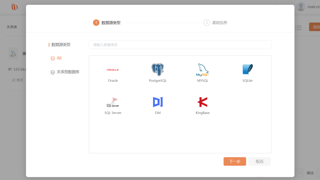 数据库类型选择