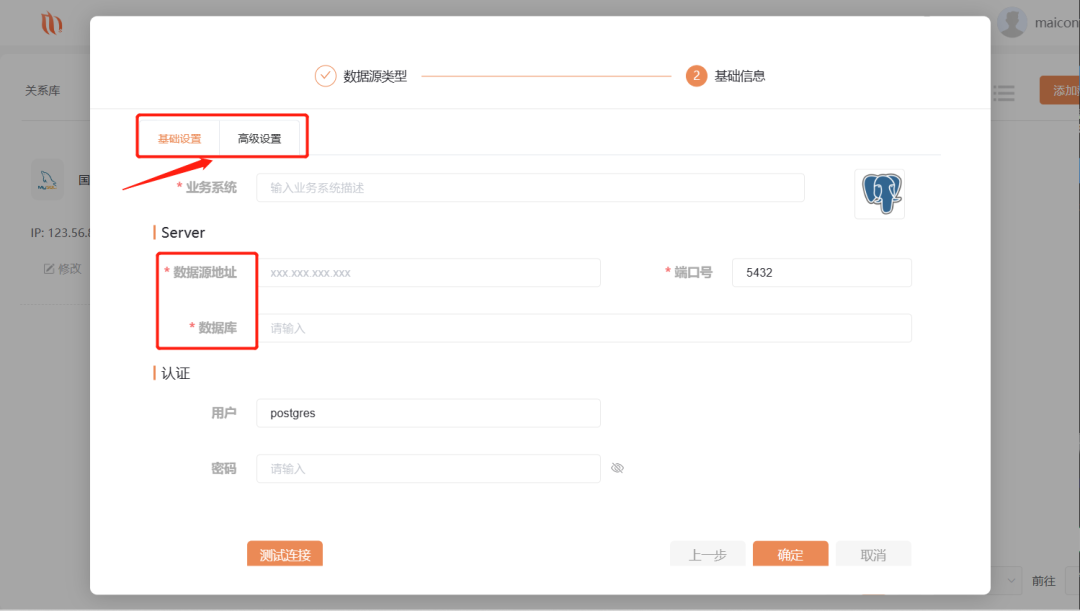填写基础设置中的相关信息,测试连接完成后,即可成功连接到数据库。