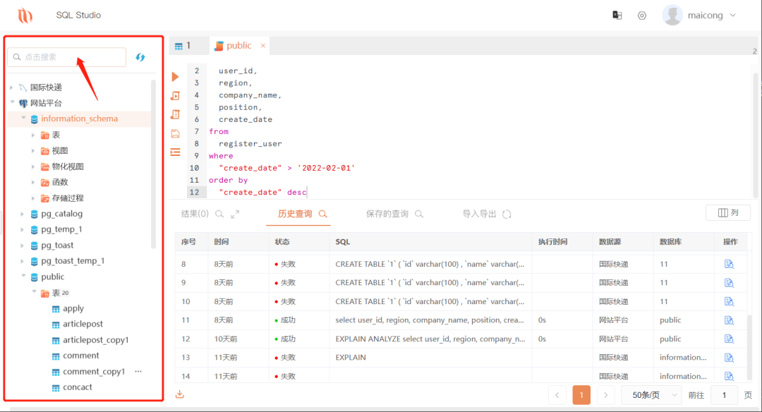 SQL Studio第一个特别之处:Web版工具。