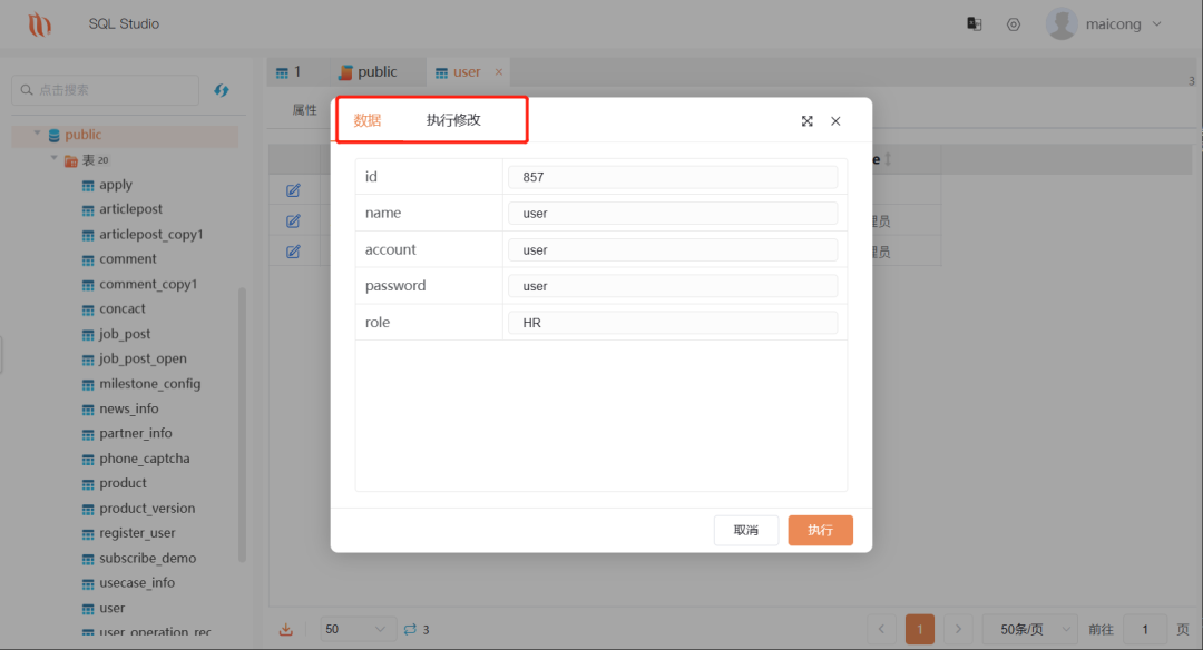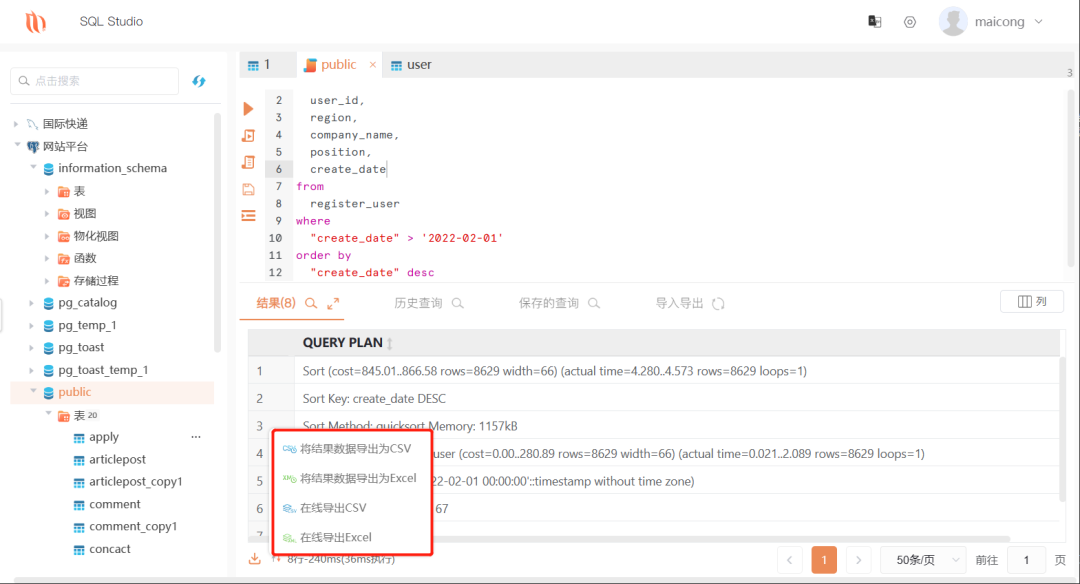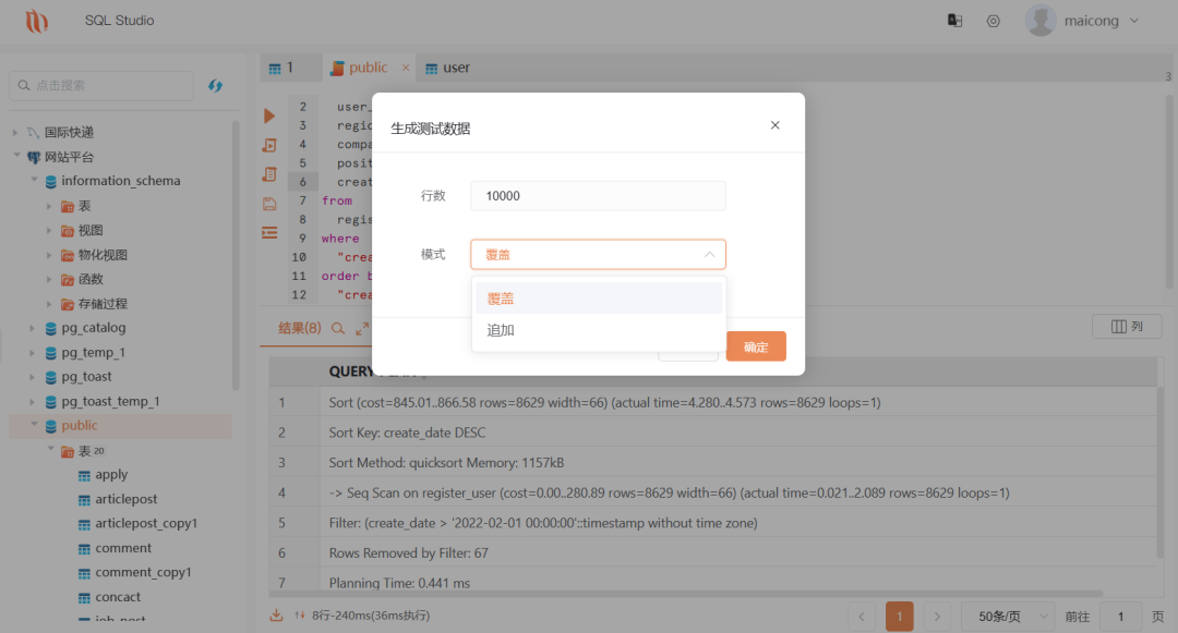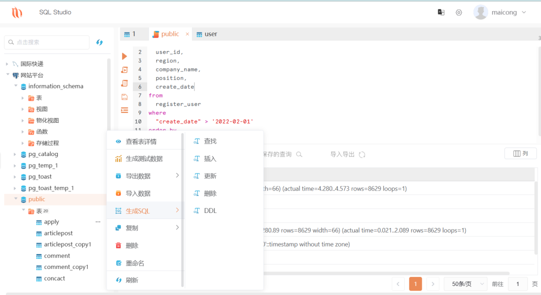 SQL Studio是一款可创建多个连接的Web版数据库管理开发工具,让你从单一应用程序可同时连接PostgreSQL、MySQL、SQLite、SQL Server、Oracle、DM(达梦)、KingBase(人大金仓)等数据库。