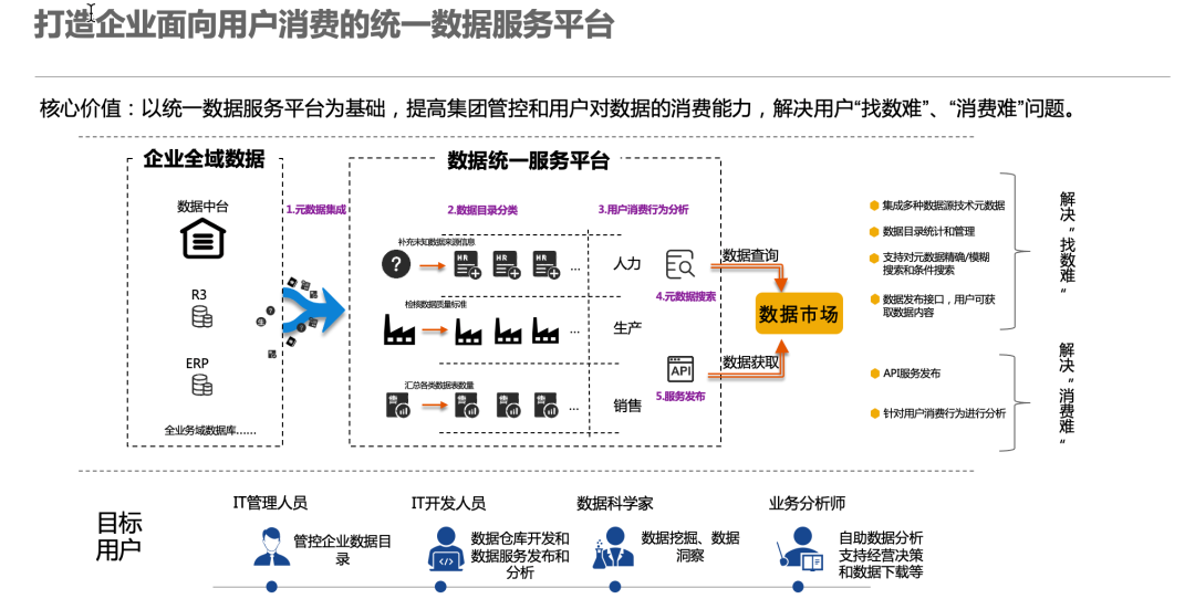 转变思路,思考商业结果的最大化(例如,利润增加、成本降低、效率提高...),而不是底层的技术流程或只考虑监管的合规性。 定义一个基于角色和数据领域的合作治理模式,明确所有利益相关者的责任和职能(例如,业务领域的数据管理员,作为交叉角色的数据架构师,技术资产管理的数据工程师...)。 尽快让治理模式的参与者和利益相关者参与进来,并让他们参与到变革中来,寻找战略盟友。 定义一个元数据目录,使你能够根据当前的需求,从业务和技术的角度汇集你的组织的数据资产的所有知识和背景,但也考虑到未来的需求。 定义数据生命周期管理的流程,从集中式元数据存储库中不断完善企业元数据信息,同时充分考虑新的技术架构(数据湖,微服务架构等)带来的变化。 促进数据生产者和数据提供者充实元数据,以及消费者对其理解、潜在用途和新需求的反馈。 开发和实施数据超市治理层和数据平台之间的双向整合,从治理的角度改善数据资产的管理,不受数据采集、存储、转换、处理和利用技术的限制影响(例如,元数据提取的自动化,数据访问权限管理的主动治理,审计日志监控等)。 设计一个具体的沟通计划并促进变革管理。 从一个用例的实施开始,然后扩展到其他数据领域、系统或项目。 提供并加强员工在数据管理实践、数据素养和分析能力方面的培训。 建立一个与需求管理相结合的数据统一服务平台,以促进所有利益相关者的日常运作。 为数据资产定义分类标准,以帮助数据管理(如业务域、信息敏感性、适用法规......)并促进其使用。 将业务资产相互联系起来,并与技术资产联系起来,创建语义图和知识图,以促进其理解。 创建仪表盘、指标和警报,以监测数据超市及其流程,并注重持续改进。