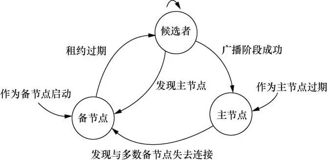 当一个节点刚启动或从故障中恢复时,其角色为备节点,同时会设定一个定时器。如果该节点收到主节点发送的更新日志,则会重置定时器,保持角色状态不变。否则,定时器超时后,即认为集群中没有有效的主节点,该节点会转变为候选者,准备竞争成为新的主节点。
