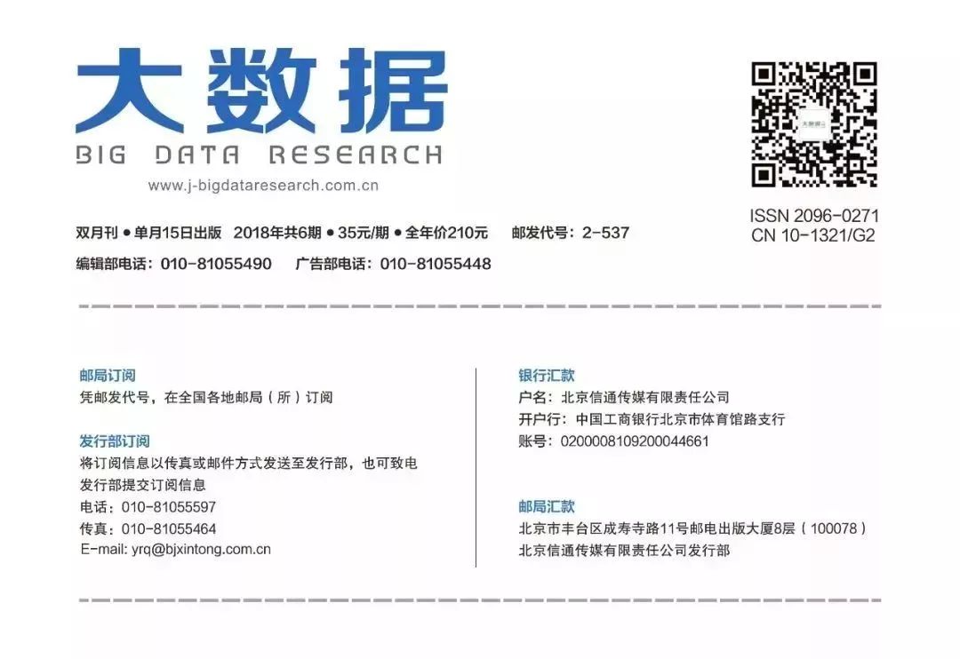 《大数据(Big Data Research,BDR)》双月刊是由中华人民共和国工业和信息化部主管,人民邮电出版社主办,中国计算机学会大数据专家委员会学术指导,北京信通传媒有限责任公司出版的中文科技核心期刊。