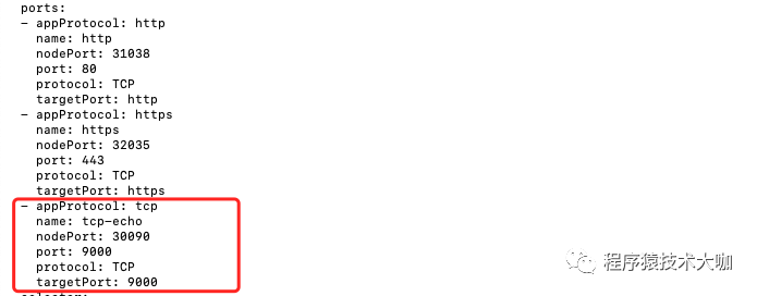 因为 TCP 服务是需要通过端口来区分服务的,所以每个服务都需要增加一个独立端口,因此,需要给 Ingress Controller 增加新的端口来映射后端的TCP服务。