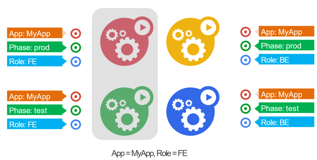 还可以通过”APP=My APP,Role=FE”筛选出MyApp应用里所有前端的pod: