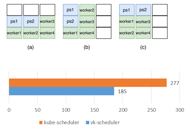 3个作业的执行时间总和; 每个作业带2ps + 4workers