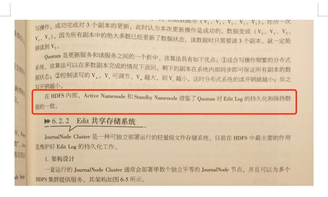 书中有多处细节值得品读,多是日常研究分布式系统的总结。例如,在6.2.1节介绍一致性原理过程中,对HDFS中其他有借鉴Quorum或Paxos思想的地方有过提示: