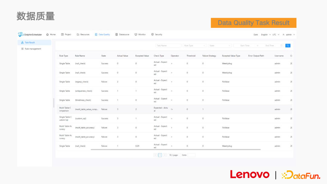 数据质量校验是在做数据处理中常用的功能。在 3.0 版本中,DolphinScheduler 内嵌了 10 个数据质量规则,都可以通过拖拉拽的方式内嵌到 DAG 里对单表或多表进行校验,保证数据处理过程中的正确性和准确性。