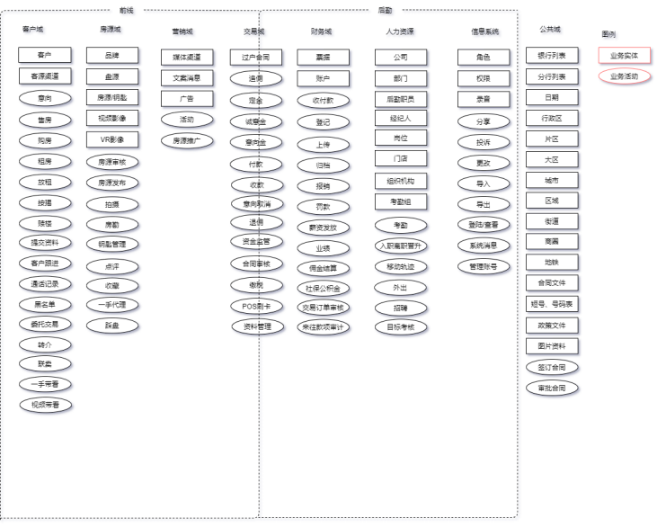 房地产中介行业的大数据主题大致如上,围绕这些主题进行数仓建模。建模主题域核心围绕"企业用户""客户""房源""组织"几个业务实体展开的以部门功能为依据的主题域数据模型,核心也是围绕这些个业务实体进行维度表和事实表创建等。