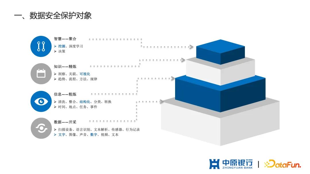 数据保护对象的梳理,是一个从数据开采到信息粗炼再到知识精炼最后形成智慧聚合的过程,其实也是厘清数据加工的全过程。数据保护的对象涵盖了各种形式的有价值的电子化的数据信息。