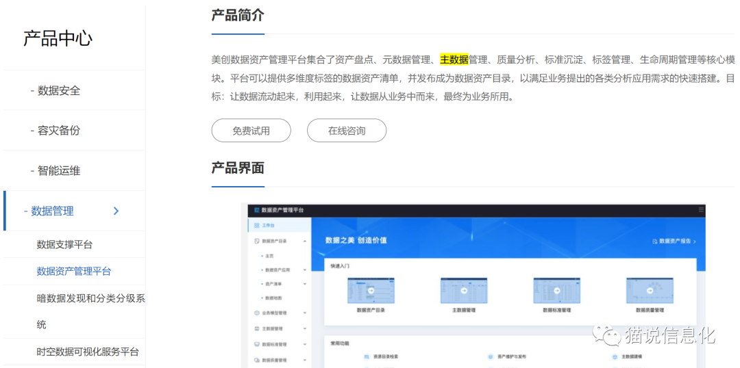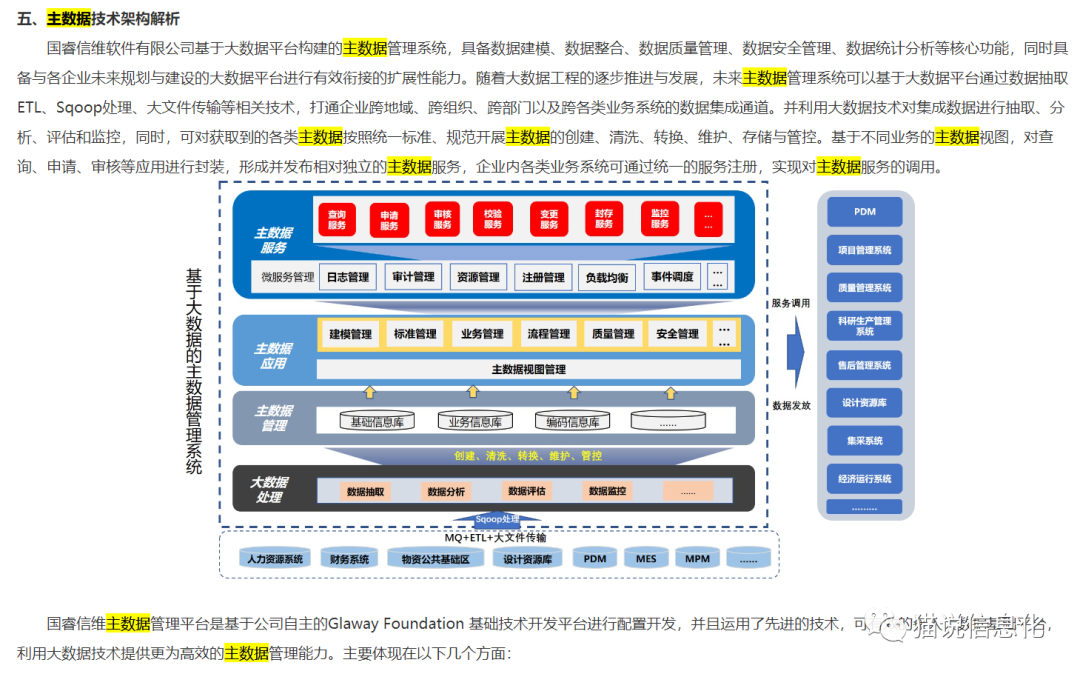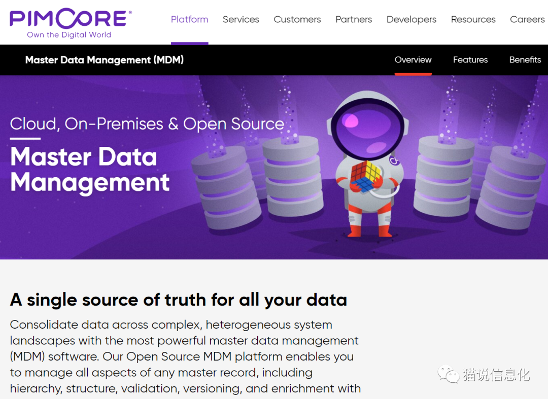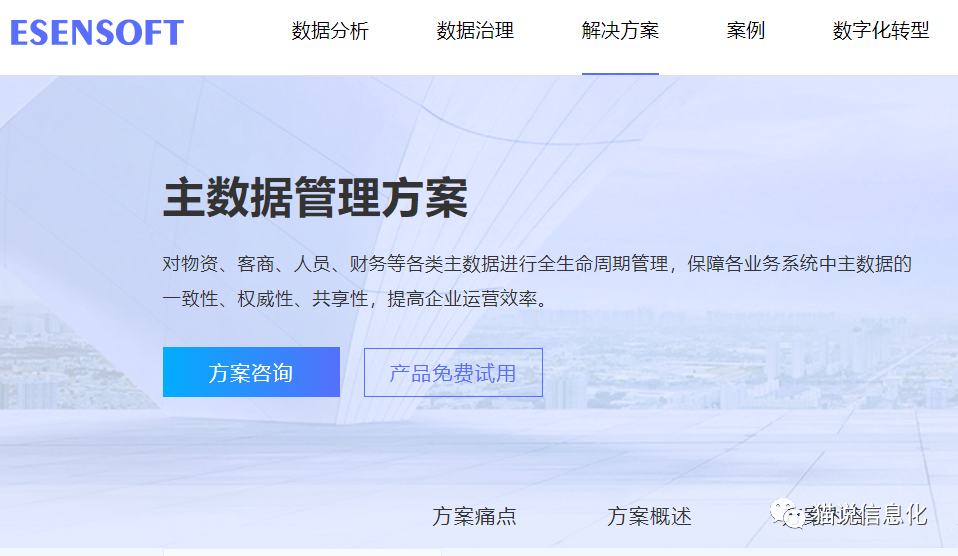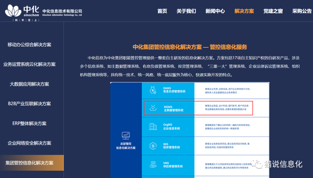 在多系统集成时主数据管理系统(MDM)是很常用的软件,例如异构系统之间,跨组织应用的系统之间。因为很常用,所以开发主数据管理软件产品的厂商也很多,首先是以包括主数据管理系统为主要产品的一些专业的数据管理类软件厂商,而且这些厂商不少都是从主数据管理起步逐渐发展为综合性数据软件厂商的,例如三维天地、美林、亿信华辰等。还有一些专业数据类软件厂商开展过主数据业务,但现在从其官方资料中不能直接找到主数据的内容,可能是涵盖在其大数据平台、数据治理平台等产品中了,这部分厂商本文暂不介绍。其次是包括以ERP软件产品为核心的企业管理软件厂商,例如用友、金蝶、浪潮、SAP等,较多的企业信息化项目是以ERP系统为核心按需集成相关应用系统的,那么为了更好的实现集成,ERP软件厂商就相应开发了主数据管理软件产品。再例如一些有规模的、综合性的企业信息化厂商,因为这些厂商承建的很多项目都有大量的系统集成内容,所以也开发了自己的主数据管理软件,比如汉得、元年、石化盈科、昆仑数智、英诺森、软通动力等。还有若干种情况,总的来说,如果厂商经常要实现系统集成应用,往往就会开发自己的主数据管理软件产品。此处需要说明的是,主数据首先是用于系统集成的,主数据管理是为了实现系统集成时数据和业务的互通互联,保障主数据的唯一性、标准性和共享性的,进而保障业务数据的一致性。所以很多年前在面向服务的体系架构下(SOA),与企业服务总线系统(ESB)一起,很好的解决了系统集成的问题。而主数据作为数据的一种,自然也会被列入数据治理的范畴内,并随着近些年开始被广泛重视的数据治理而被进一步关注到,但实际上主数据以及主数据管理系统是远远早于数据治理热潮之前就被广泛应用的,主数据管理软件的产品也已很成熟,并且也随着技术的发展,在本地部署的产品之外也出现了云版本的产品,为用户提供了更多的选择。