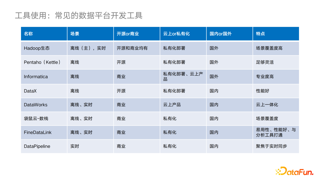 下面是几个常见的数据平台开发工具,可以基于公司采购情况和个人的情况选择学习。