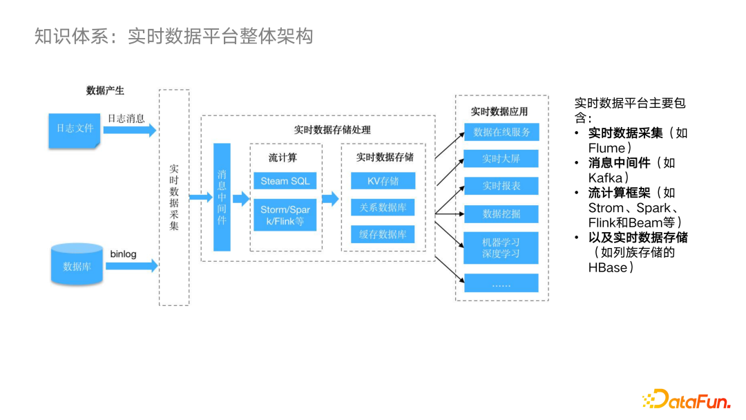 实时数据平台显著的特点是数据实时采集,最常用的技术就是基于日志解析,它并不是直接去读取数据库的文件,而是基于数据库变更的日志去解析提取出变化的数据,然后再同步到目标端,目标端通常用消息中间件来接收,如:Kafka,再给后面的流式计算引擎应用(如 Flink),最终再输出到目标端供消费。