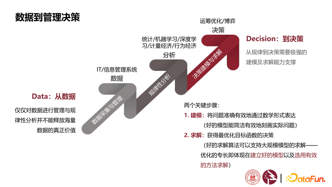 导读 随着大数据的进一步发展,很多企业通过对生产运营数据的管理和规律分析,直接进行管理决策,这在真正的商业场景中,会导致出行决策失误,因为企业忽视了一个重要问题,那就是简单的数据规律分析,并不能释放海量数据的真正价值。那么如何释放数据的海量价值,实现从数据到精准决策?下面和大家分享的题目为“数据驱动的生产运营管理决策”,一起看一下杉数科技是如何基于数据实现智能决策的。