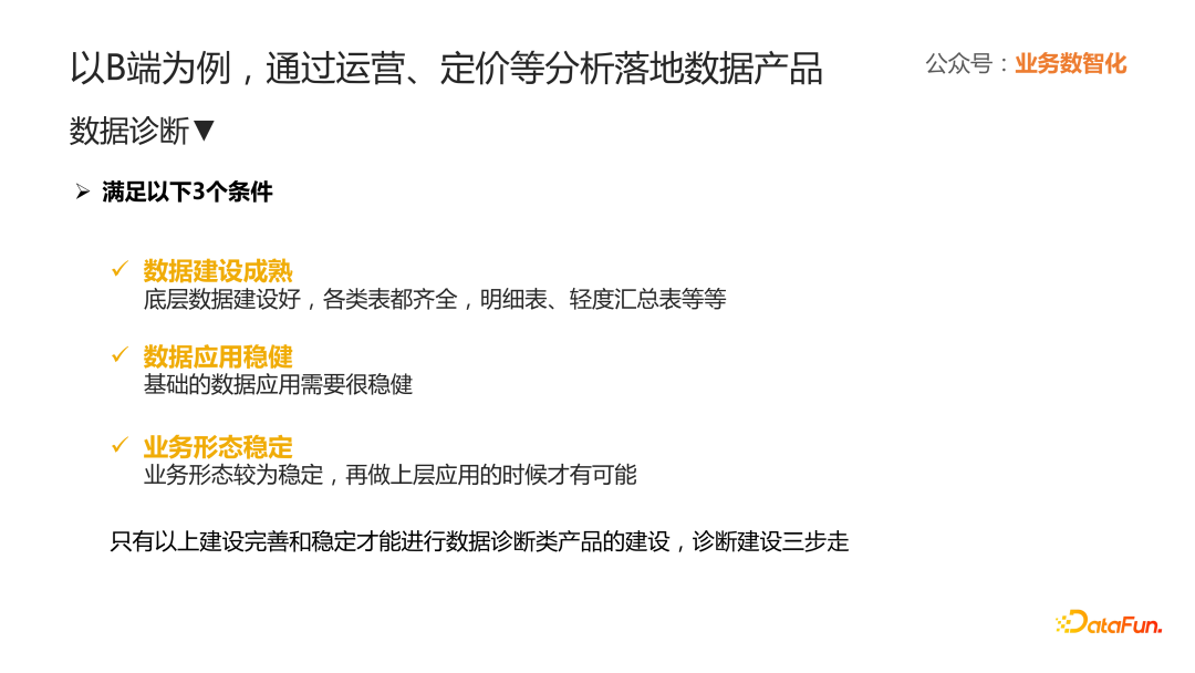 接下来介绍诊断数据驱动产品是如何去做的。在建设诊断产品之前,要注意我们现在是否满足了以下 3 个条件: