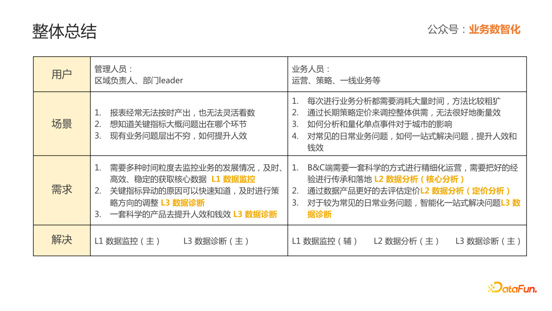 核心问题重点考虑:在比较复杂的业务场景下,所涉及的业务链条非常多,如果我们想最大化业务型数据产品的价值,一定要在各个环节里面抓重要核心,做一个业务型的数据产品,要比业务同学更加了解业务。