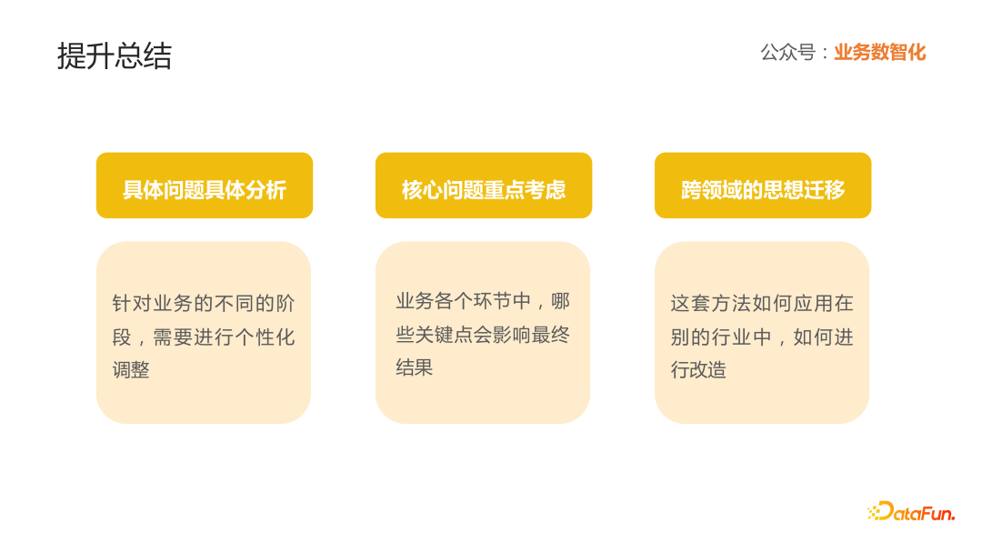 跨领域的思想迁移:除了 O2O 行业,我在传统的工业数据化转型都有过相关的一些经验,所以上述的方法在各个领域都有尝试去落地。大家可以思考下,如何运用本文讲解的一套方法去落地到大家现在所处的各个行业。