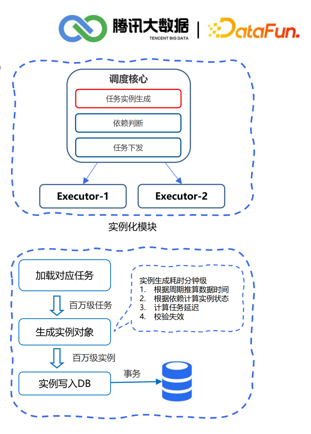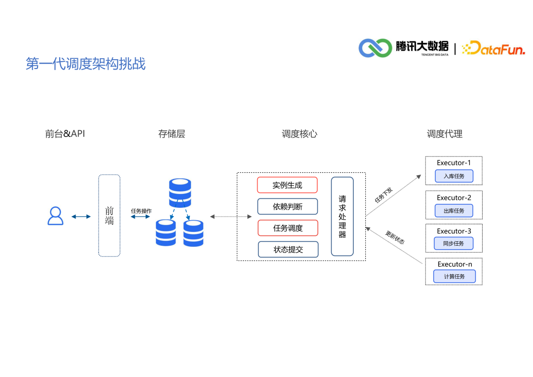 应用负载高:调度内核负载高且水平扩展困难,百万任务单机调度; 存储负载高:数据库单机已达到瓶颈,虽然做了读写分离,但是单节点还是需要保存所有数据; 程序性能差:由于生成和写入数据库是串行操作,导致大数据事务,而且回滚又会造成大批量任务的延时。